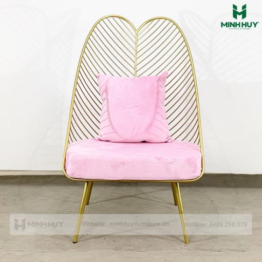 - Khung sắt được thiết kế giống hình chiếc lá, sơn tĩnh điện màu vàng đồng tạo nên một tổng thể độc đáo, đẹp mắt, tạo điểm nhấn cho cả căn phòng.
